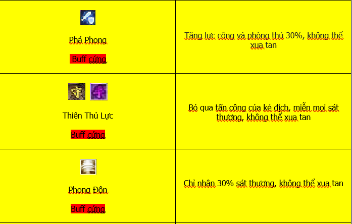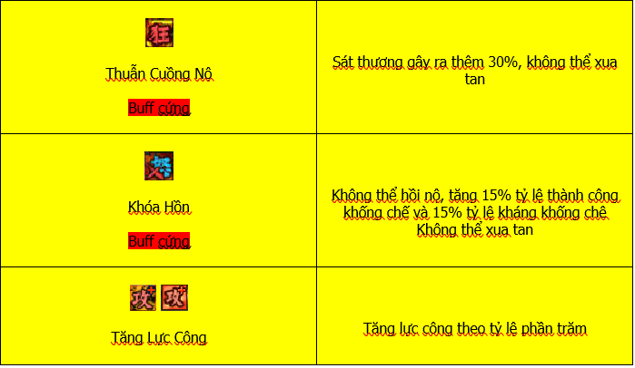 + Các hiệu ứng Buff hiểu đơn giản là có tác dụng gia tăng sức manh hoặc tốc đô, thể lực của đồng đội, có thể kể đến các buff như tăng vật công, tăng tốc, tăng máu, tăng thủ.