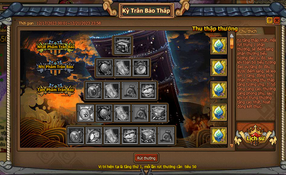 2. Số tầng càng cao, thưởng càng phong phú, sau khi rút trúng thưởng tầng cao nhất, hoạt động kết thúc.