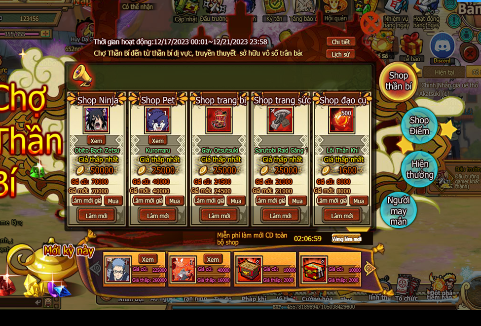 2. Trong chợ thần bí có 5 loại shop , phân biệt gồm shop ninja , shop pet , shop trang bị , shop trang sức và shop đạo cụ , mỗi shop đều bán loại vật phẩm tương ứng