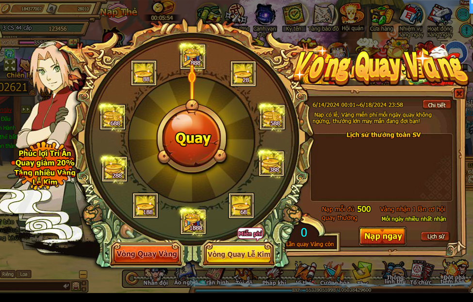 1. Trong thời gian event, người chơi nạp đủ 500 vàng nhận 1 lần cơ hội quay ( vòng quay vàng )
