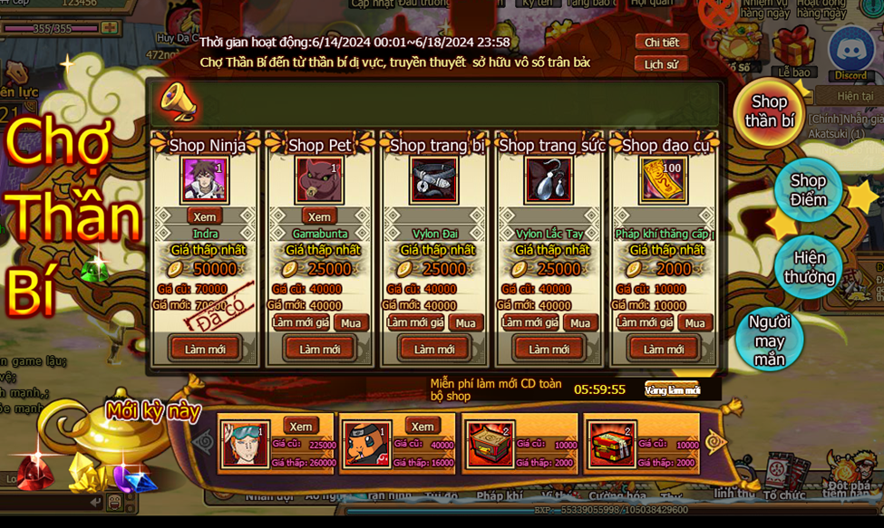 2. Trong chợ thần bí có 5 loại shop , phân biệt gồm shop ninja , shop pet , shop trang bị , shop trang sức và shop đạo cụ , mỗi shop đều bán loại vật phẩm tương ứng