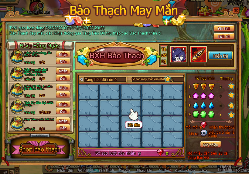 5. Ở Shop Bảo Thạch tiêu Sao May Mắn đổi các loại đạo cụ.