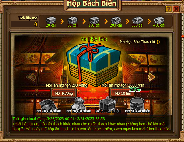 3. Mở các loại hộp tổng tích lũy nhận hộp thưởng tích lũy Bách biến ma hộp.