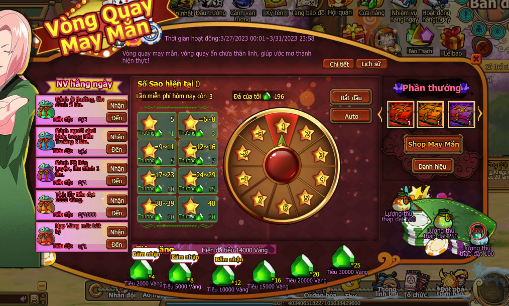 1.Trong thời gian hoạt động hoan thành nv hằng ngày nhận sao may mắn