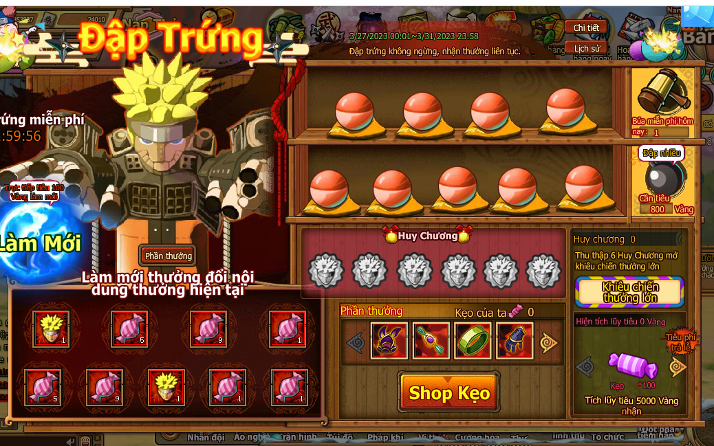 7. Trong quá trinh đập trứng nhận Huy Chương , tập hợp đủ 6 Huy Chương mở kiêu chiến thưởng lớn , ở kiêu chiến thưởng lớn nhận lượng lớn kẹo