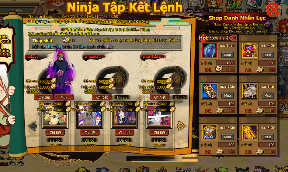 2.DNL dùng để mua ninja có hạn chế lượng tối đa ( 1 tấm DNL bằng 1 vàng )
