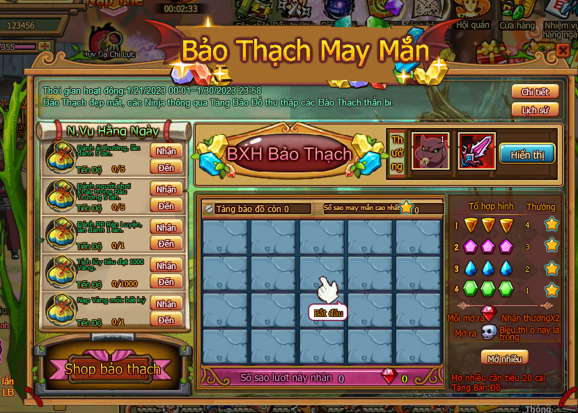 5. Ở Shop Bảo Thạch tiêu Sao May Mắn đổi các loại đạo cụ.