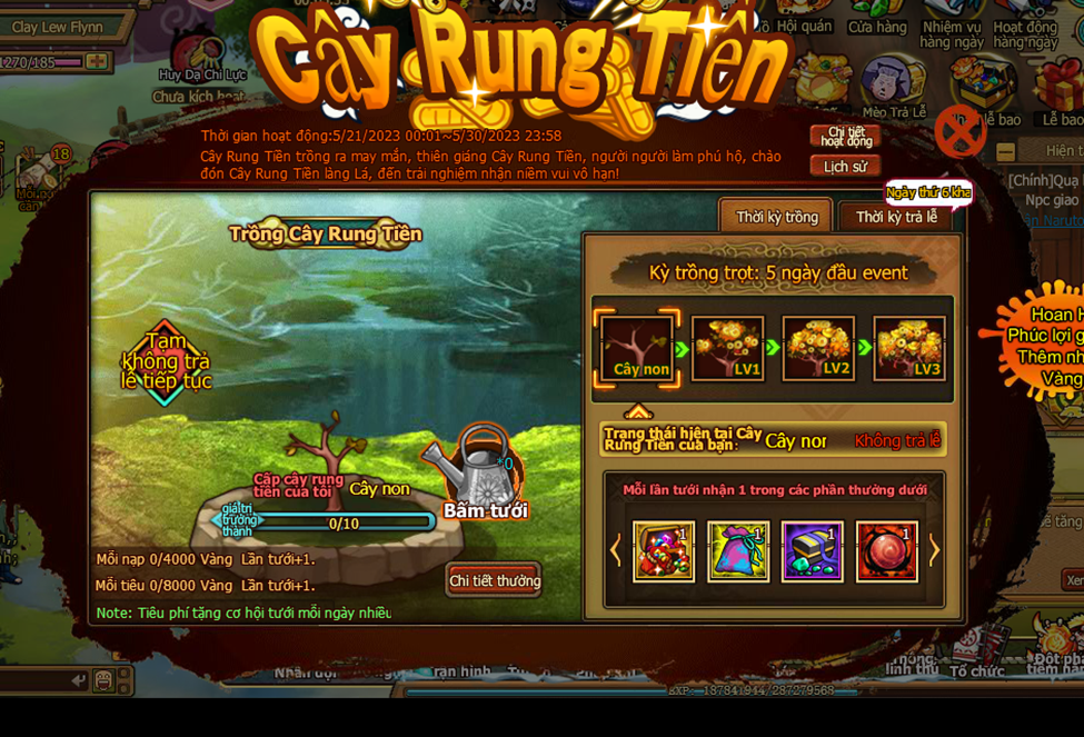 + Từ ngày 21.5 đến 25.5 nạp đạt các mốc tương ứng sẽ nhận phần thưởng