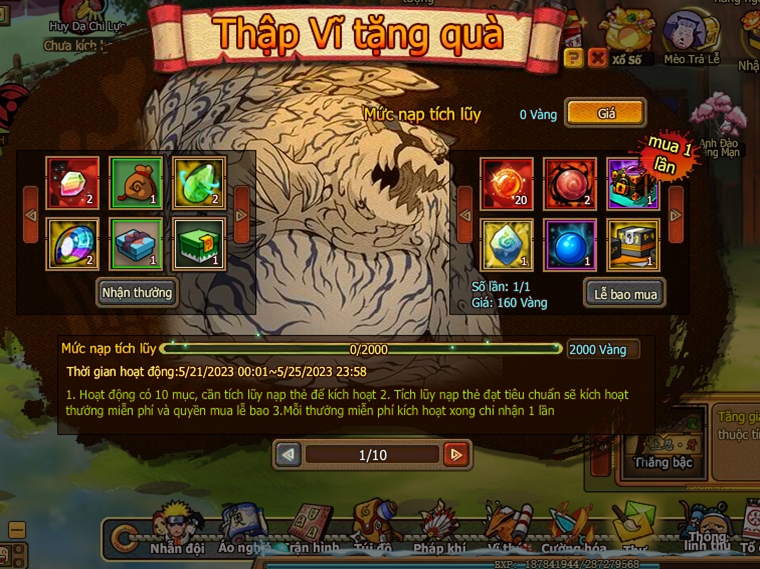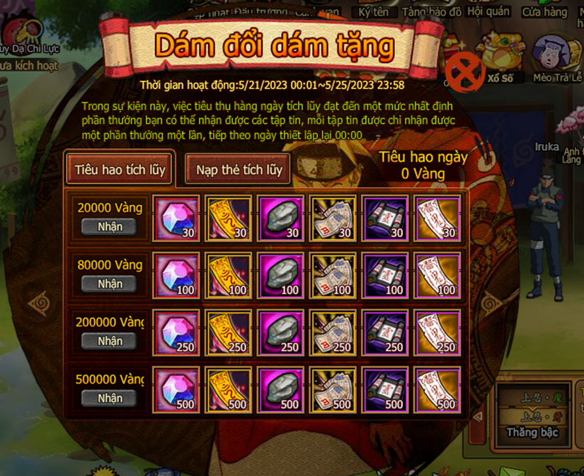 3. Tích lũy nạp đạt 50000 vàng , nhận đại lễ tích lũy nạp