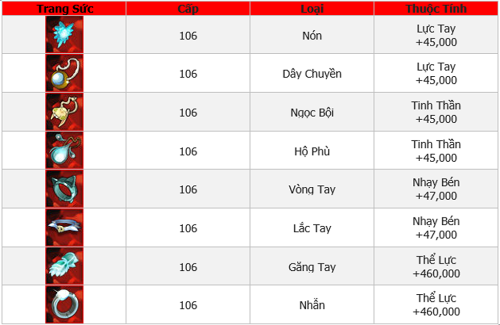 Danh Sách Trang Sức