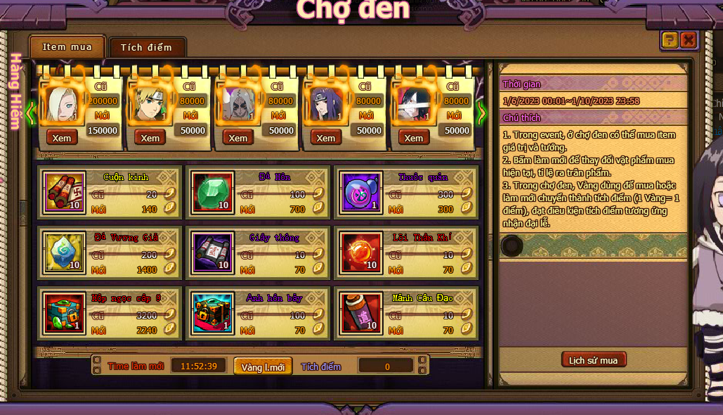 1. Trong event , ở chợ đen có thể mua item giá trị và tướng