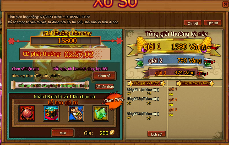 3. Trong thời gian event , người chơi tiêu đủ 1000 vàng nhận 1 lần cơ hội vòng quay lễ kim , mỗi ngày nhiều nhất có thể nhận 20 lần