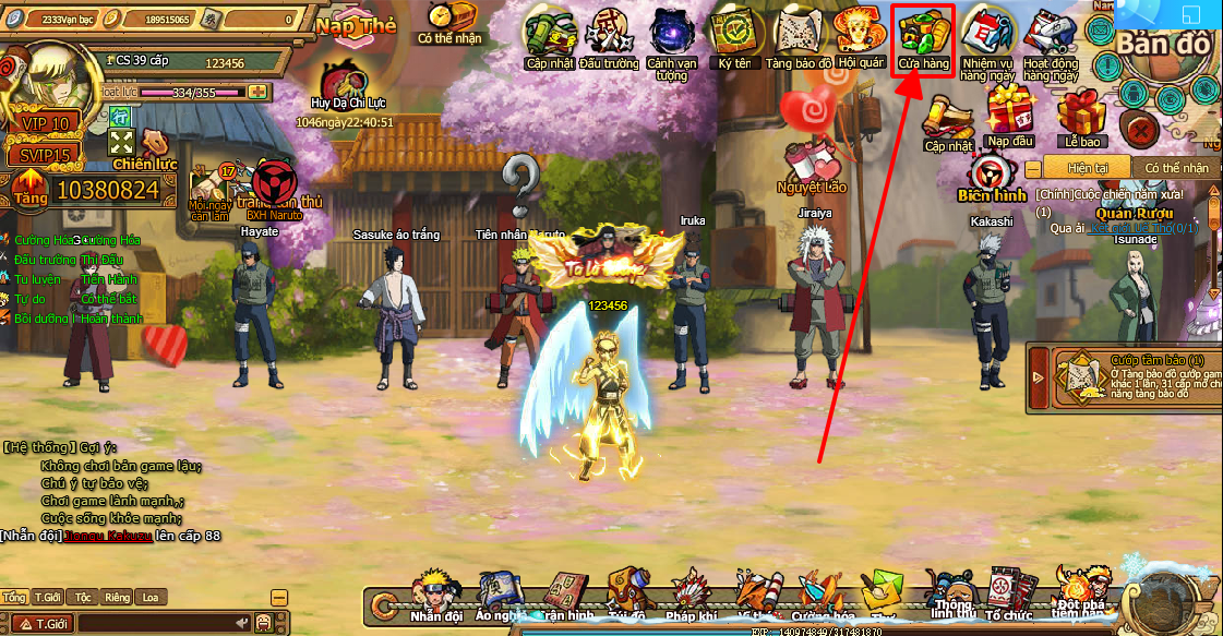 Để mở shop này quý ninja hãy bấm chọn vào nút tại vị trí như các hình ảnh sau đây: