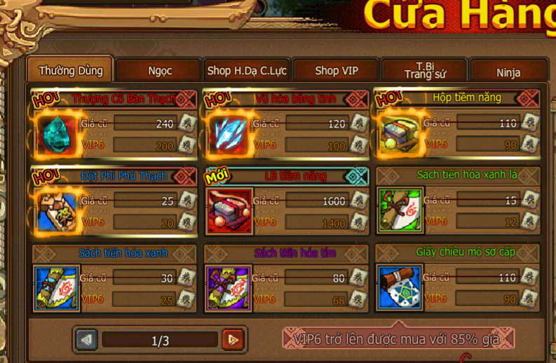 Lưu ý: Khi các bạn qua một mốc cấp khác thì ưu đãi trước đó sẽ không mua được nữa .