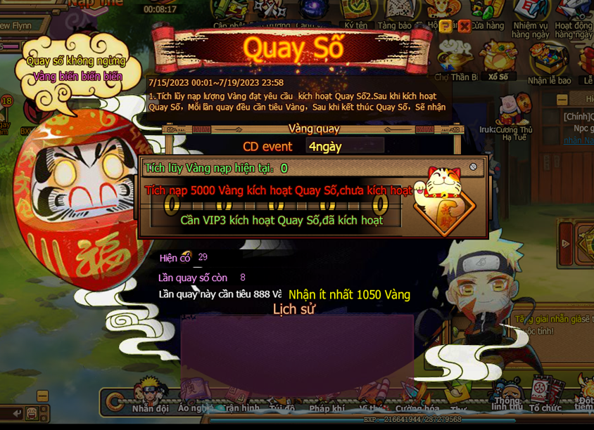 1. Tích lũy nạp lượng vàng đạt yêu cầu kích hoạt Quay Số.