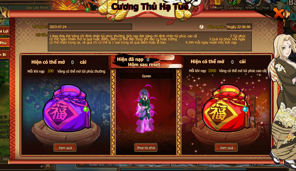 3. Quà túi phúc mỗi ngày có thể nhận trùng lại, và quà chỉ có thể là 1 loại trong số quà điểm hoặc lễ bao.