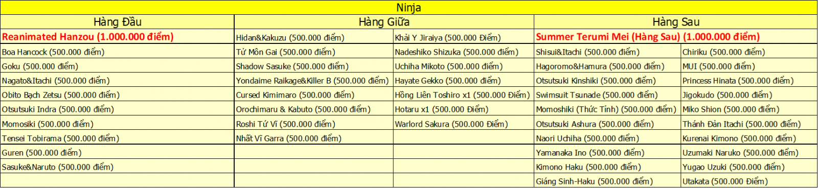 - Trang Bị Sarutobi ( 500.000 Điểm ) 6 món