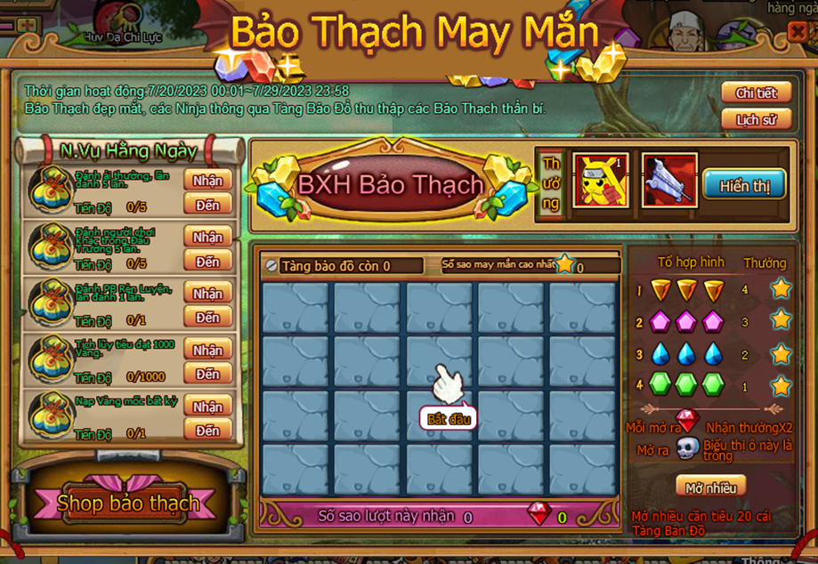 5. Ở Shop Bảo Thạch tiêu Sao May Mắn đổi các loại đạo cụ.