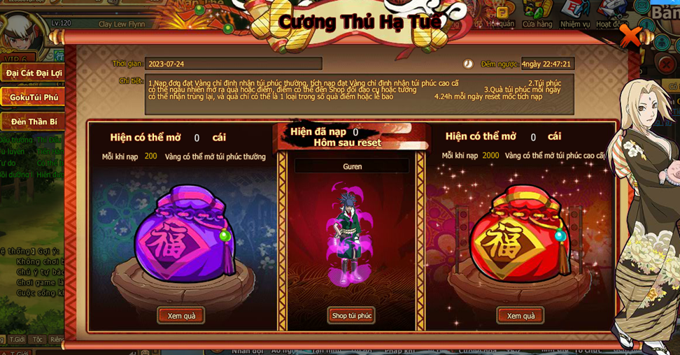 1. Nạp đơn đạt Vàng chỉ định nhận túi phúc thường, tích nạp Vàng chỉ định nhận túi phúc cao cấp.