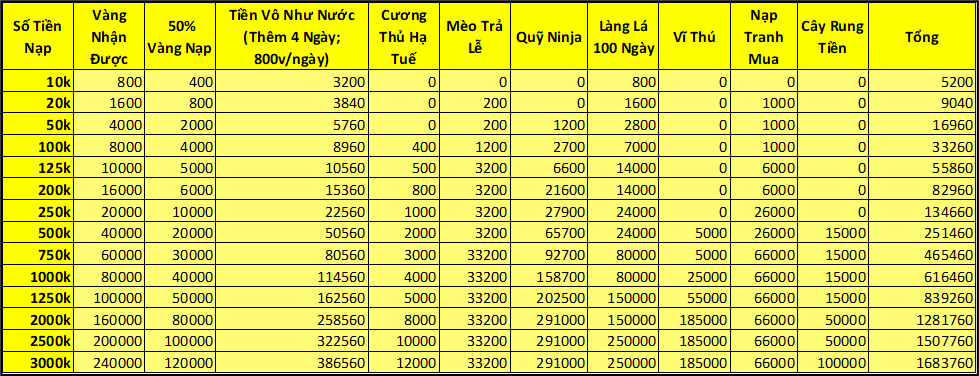 3. Ninja cuôi cấp càng cao , vàng trả lễ càng nhiều