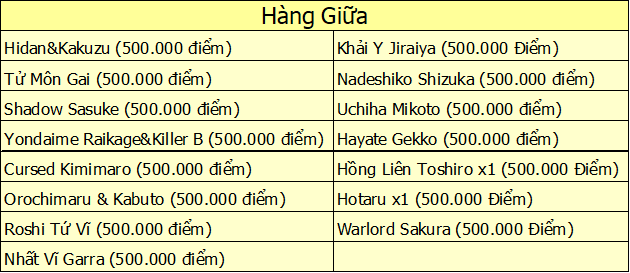 - Trang Bị Sarutobi ( 500.000 Điểm ) 6 món