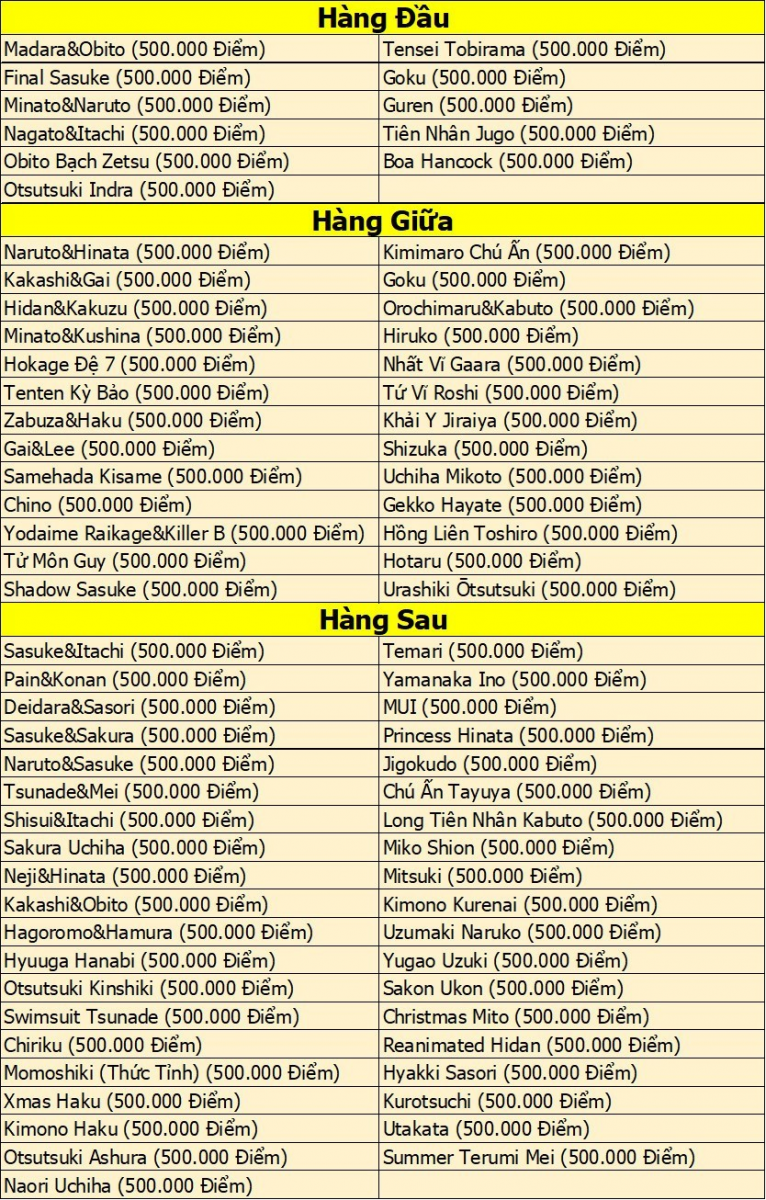 - Pet : Uzumaki Himawari ( 100.000 điểm )