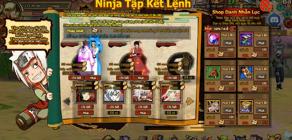 2.DNL dùng để mua ninja có hạn chế lượng tối đa ( 1 tấm DNL bằng 1 vàng )