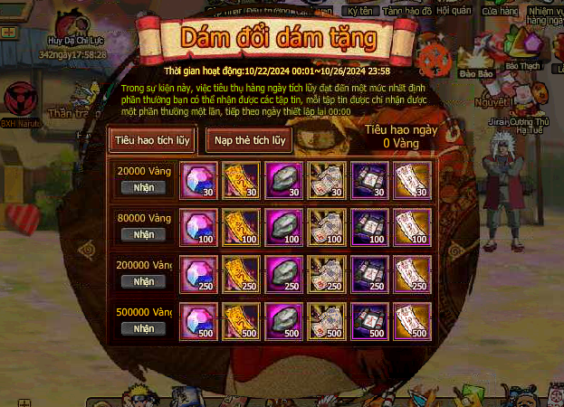 Vàng trả lễ của mỗi mốc mức độ nạp 1 lần đều chỉ tham gia 1 lần