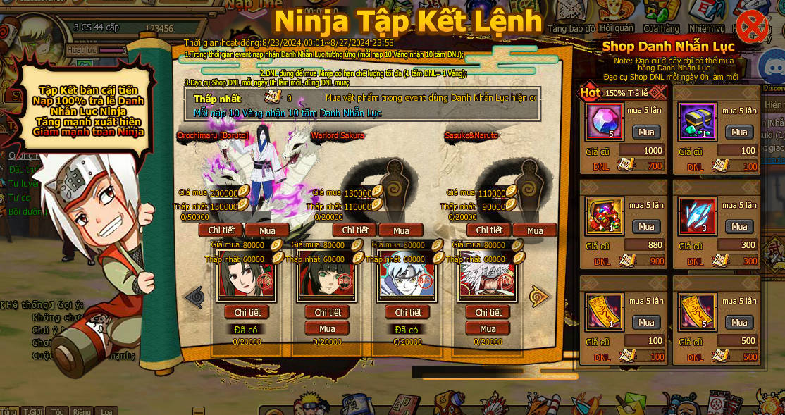 4. Liên SV thu thập Huyết Kế đạt số lượng chỉ định, đồng thời nạp và nhận tùy ý 1 mốc thưởng Gia Tộc, sẽ nhận LB Tộc Otsutsuki.