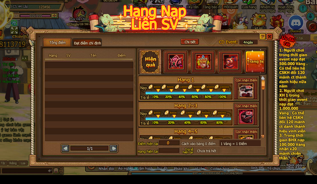 Trong thời gian event nạp 1 lần đạt mức chỉ định , nhận trả lễ vàng