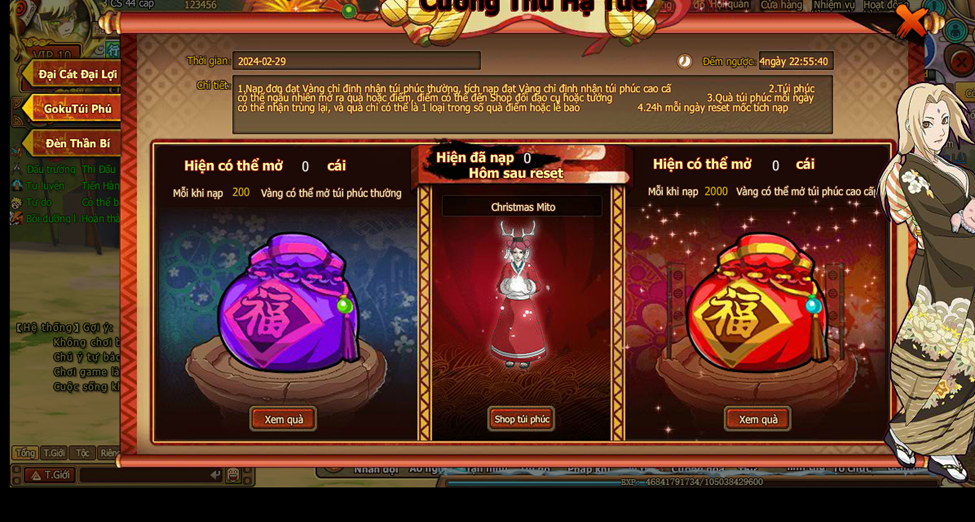 3. Quà túi phúc mỗi ngày có thể nhận trùng lại, và quà chỉ có thể là 1 loại trong số quà điểm hoặc lễ bao.