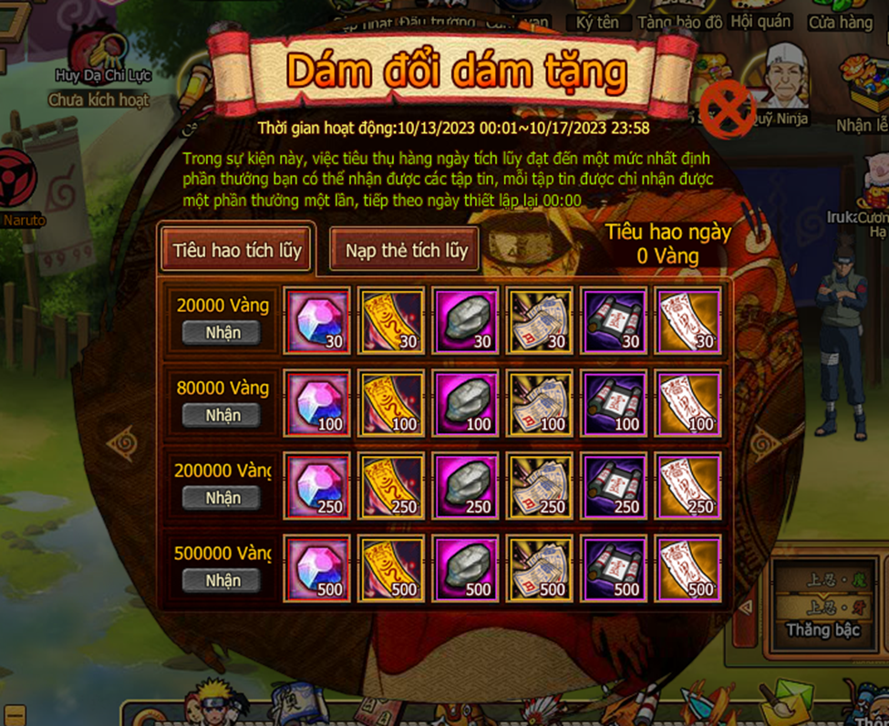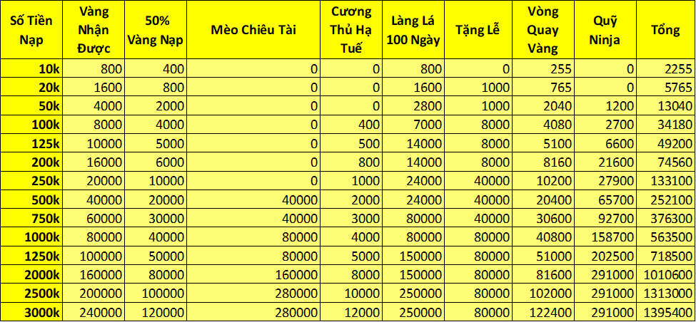 3. Ninja cuôi cấp càng cao , vàng trả lễ càng nhiều