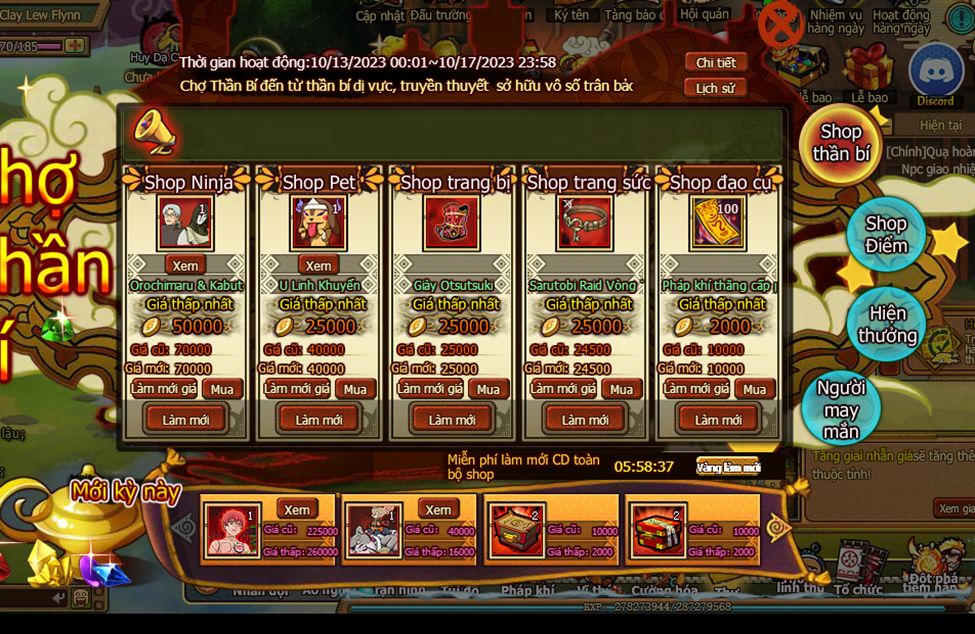 2. Trong chợ thần bí có 5 loại shop , phân biệt gồm shop ninja , shop pet , shop trang bị , shop trang sức và shop đạo cụ , mỗi shop đều bán loại vật phẩm tương ứng