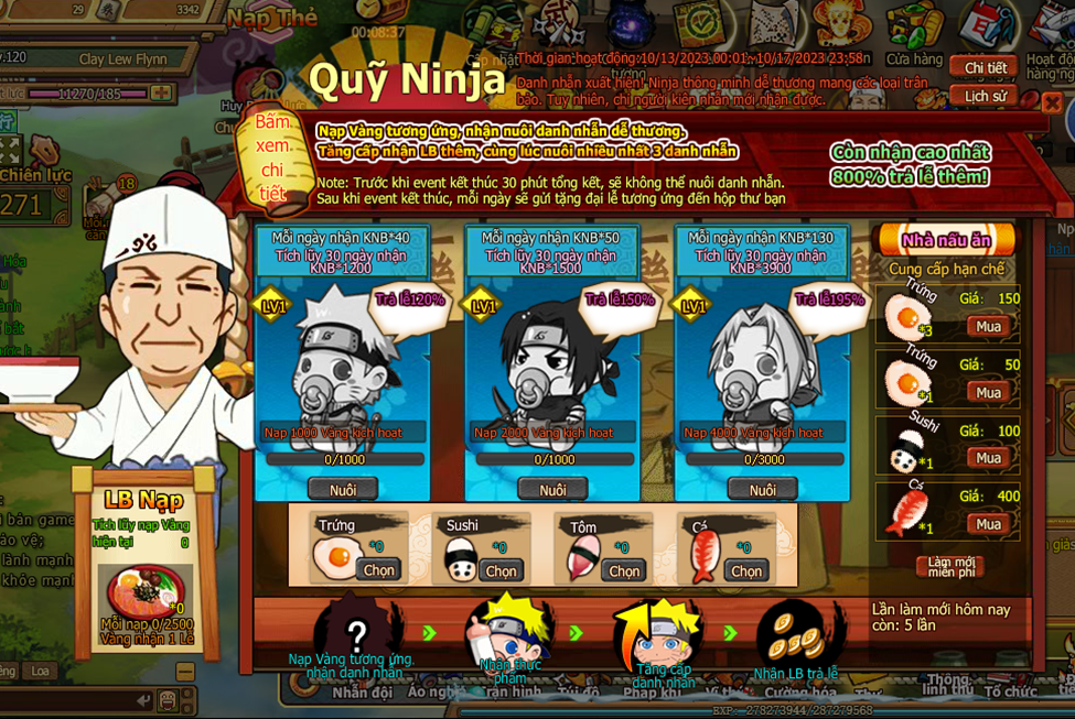 2. Tổng có 3 loại quỹ vàng ,mỗi loại trả lễ khác nhau , có thể nuôi 3 ninja