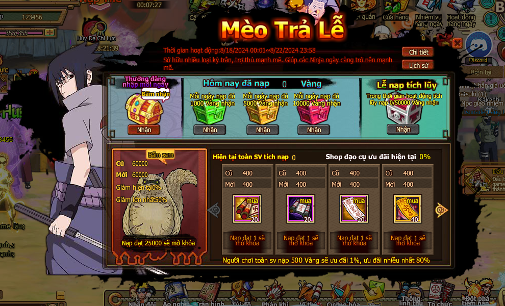 Lưu Ý : nạp 1 lần 200.000 vàng mới nhận cả 3 con mèo
