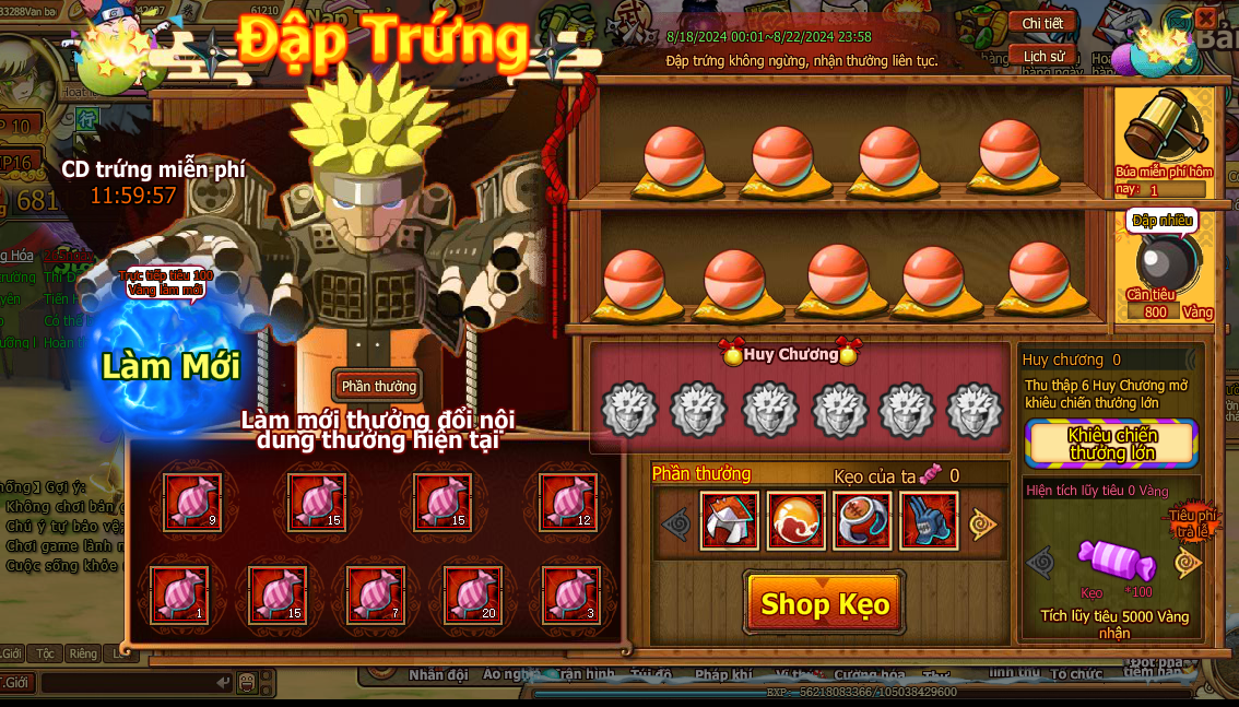 7. Trong quá trình đập trứng nhận Huy Chương , tập hợp đủ 6 Huy Chương mở kiêu chiến thưởng lớn , ở kiêu chiến thưởng lớn nhận lượng lớn kẹo