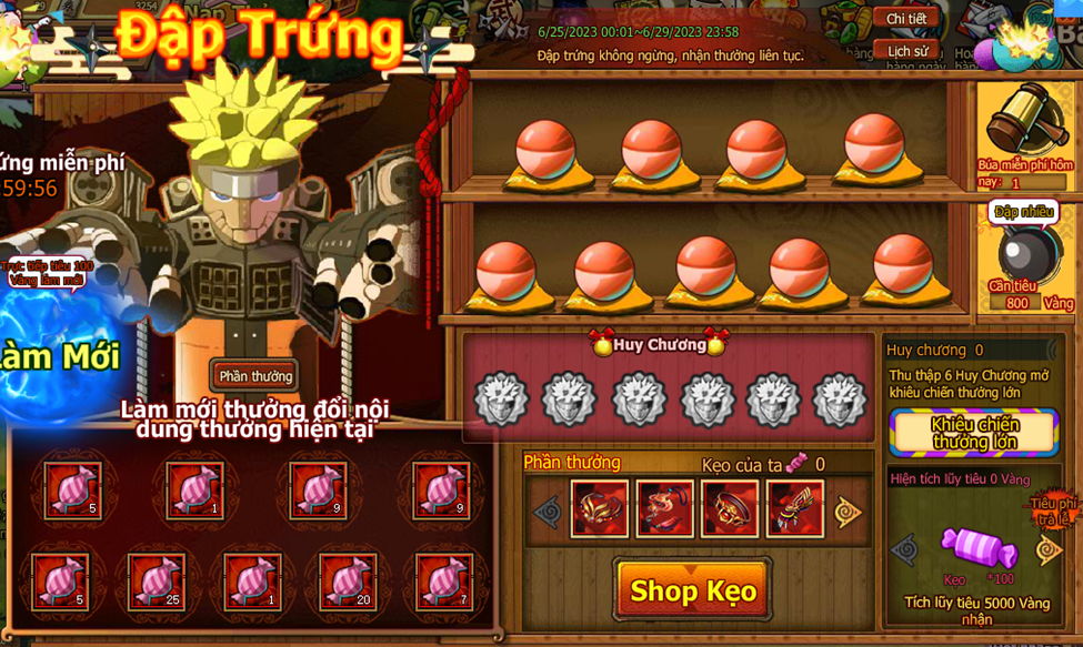 7. Trong quá trinh đập trứng nhận Huy Chương , tập hợp đủ 6 Huy Chương mở kiêu chiến thưởng lớn , ở kiêu chiến thưởng lớn nhận lượng lớn kẹo