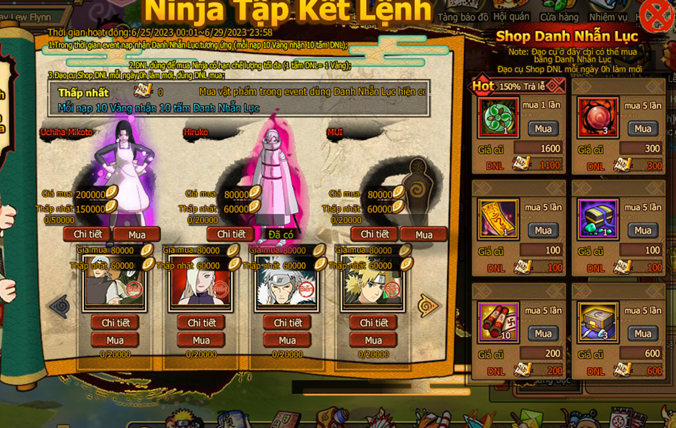 2.DNL dùng để mua ninja có hạn chế lượng tối đa ( 1 tấm DNL bằng 1 vàng )