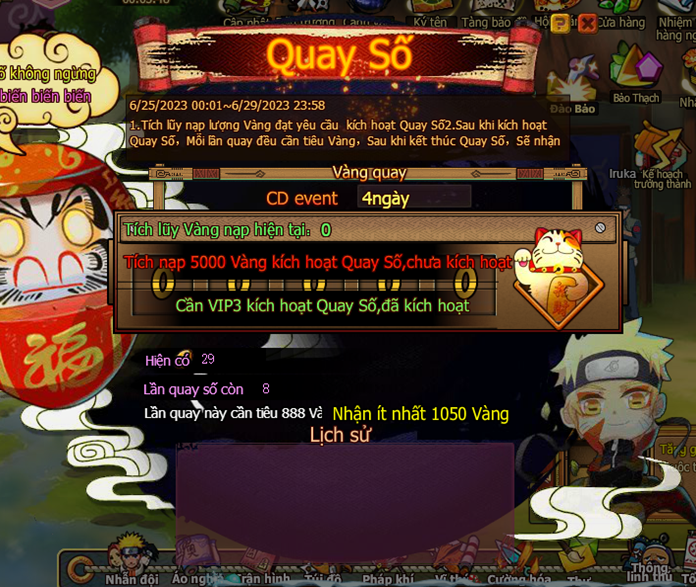 1. Tích lũy nạp lượng vàng đạt yêu cầu kích hoạt Quay Số.