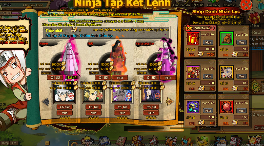 2.DNL dùng để mua ninja có hạn chế lượng tối đa ( 1 tấm DNL bằng 1 vàng )