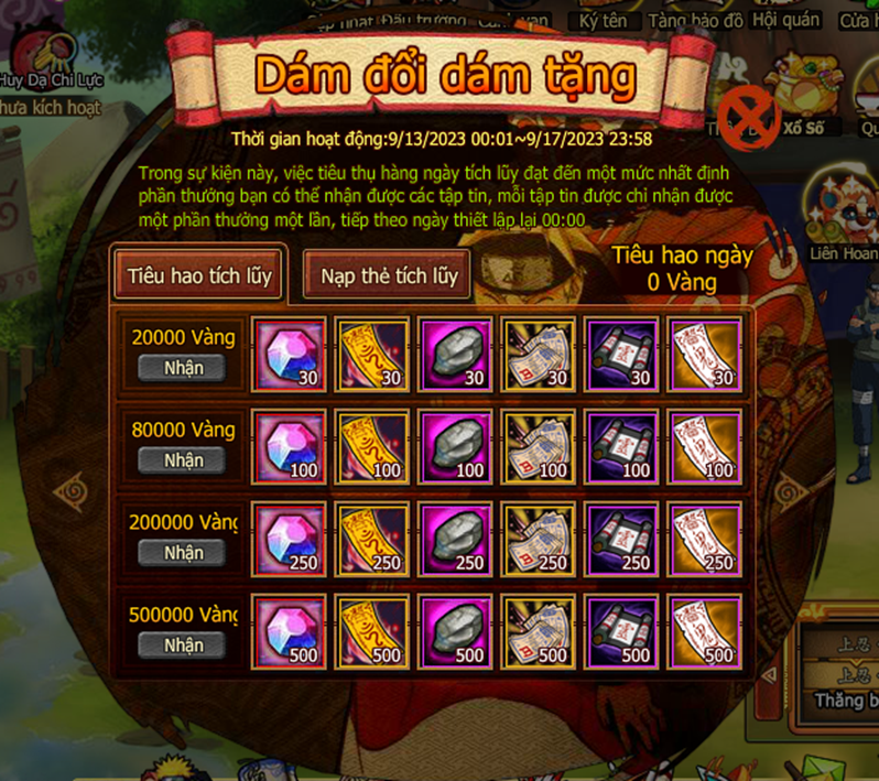 3. Ninja cuôi cấp càng cao , vàng trả lễ càng nhiều