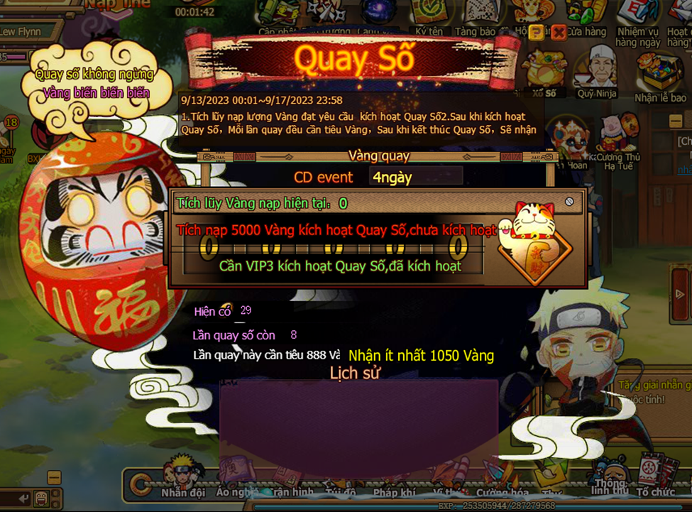 2. Sau khi kích hoạt Quay Số, Mỗi lần quay đều cần tiêu Vàng, sau khi kết thúc Quay Số, sẽ nhận Vàng trả