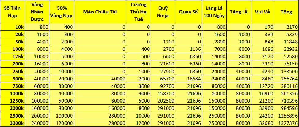 Vàng trả lễ của mỗi mốc mức độ nạp 1 lần đều chỉ tham gia 1 lần
