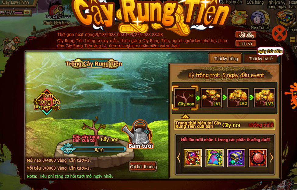 3. Mèo chiêu tài mỗi ngày tặng 1 lần Vàng và đạo cụ.
