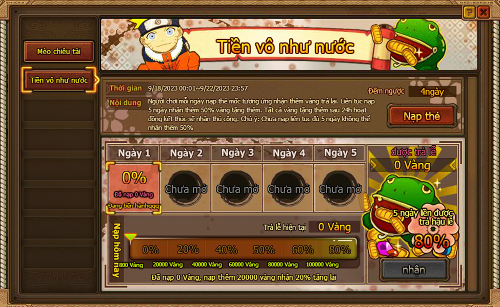 3. Tích lũy nạp đạt 50000 vàng , nhận đại lễ tích lũy nạp