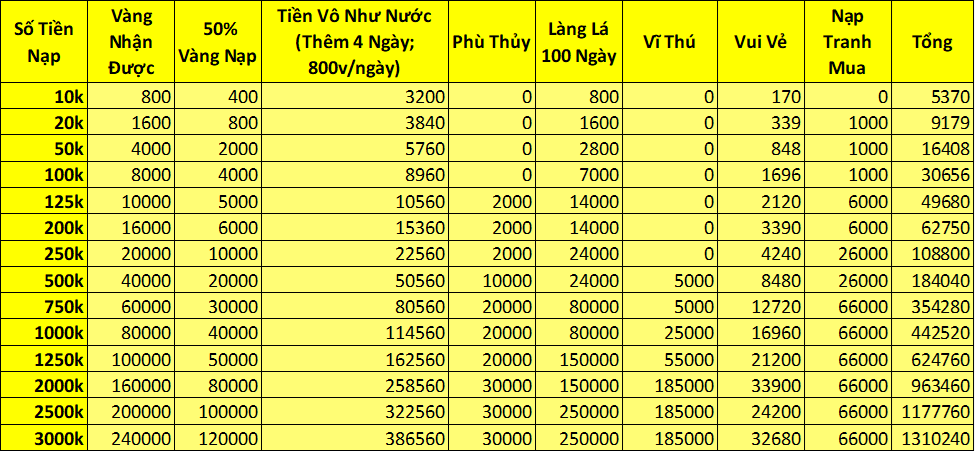 Vàng trả lễ của mỗi mốc mức độ nạp 1 lần đều chỉ tham gia 1 lần