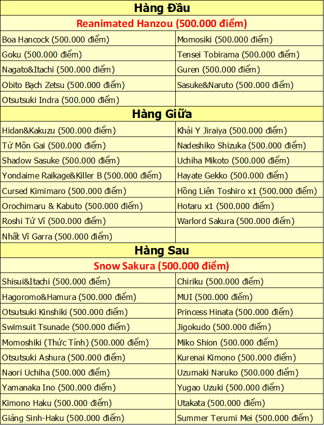 - Thánh Đản Itachi ( 500.000 điểm )