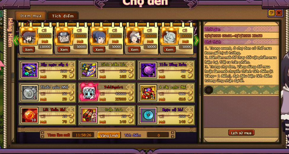 1. Trong event , ở chợ đen có thể mua item giá trị và tướng