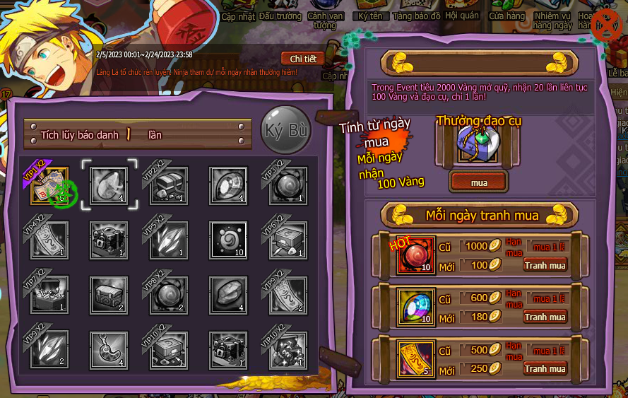2. Mua các lễ bao VIP khác nhau mỗi ngày nhận 1 lần, vào 0h sẽ cài lại