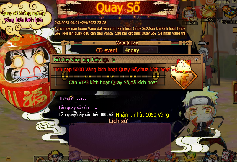1. Tích lũy nạp lượng vàng đạt yêu cầu kích hoạt Quay Số.